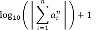 Each entry submitted to the contest receives an entry score equal to the base-10 logarithm of the absolute value of the sum of its n nth powers, plus 1. Algebraically, its entry score equals: